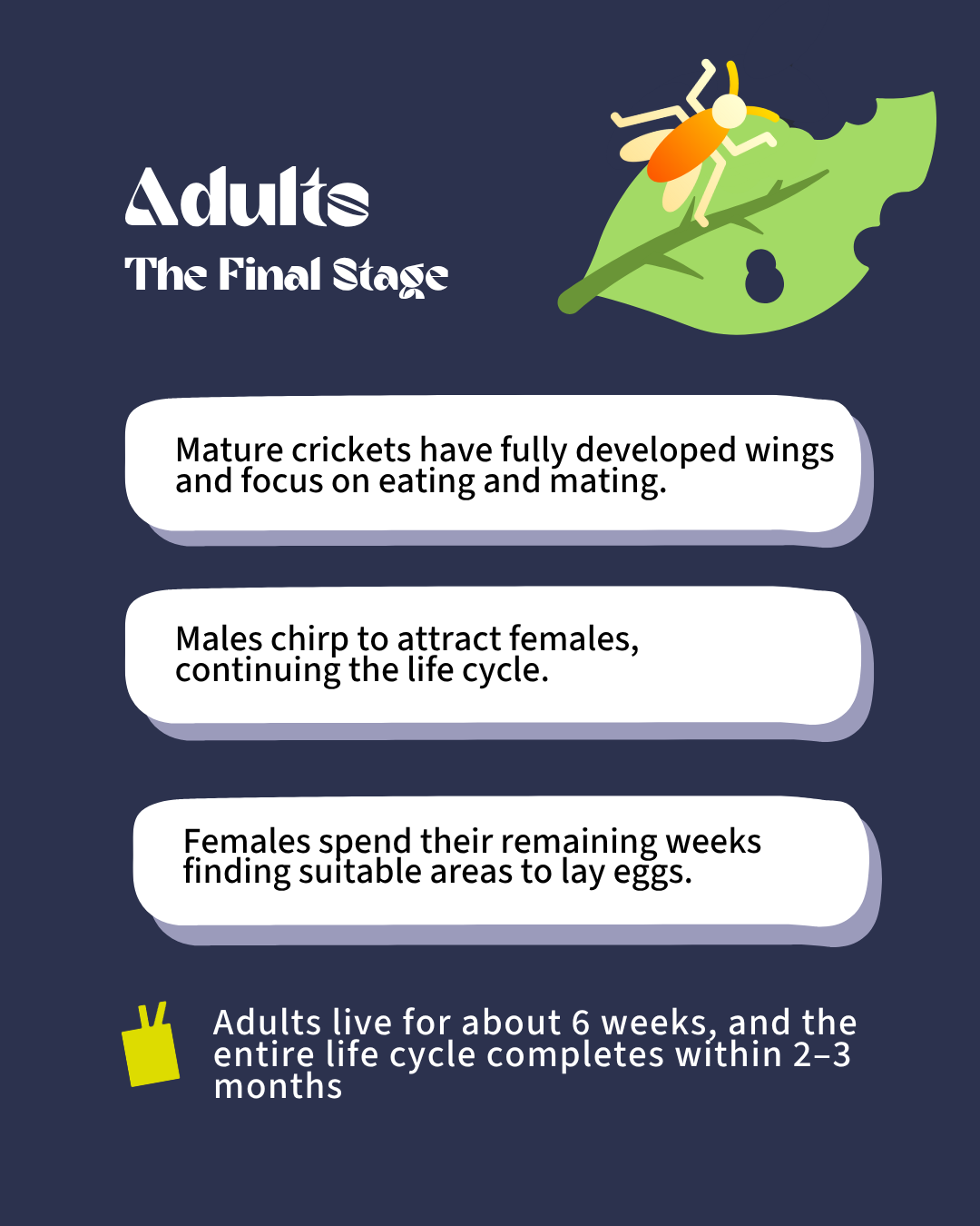Crickets are efficient, fast-growing, and fascinating creatures. From eggs to adults, their entire life cycle takes just 2–3 months, and it all happens with minimal resources and space. This rapid, low-impact growth makes them an ideal protein source for the future. Curious how it works? Here’s a closer look.